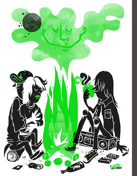 Kjeft a! bua har vært utsatt for mye rar skribling de siste dagene. Vi har hatt masse folk innom, og kjelleren har blitt utsmykka av bl.a Dongery, Tony Tundra, Stig fra Ill Design og Stine Belden Røed. Her kommer en liten status fra bua.